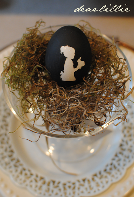 On the other side of the egg I put one of the vinyl silhouettes and then just painted over it and then peeled off the vinyl.